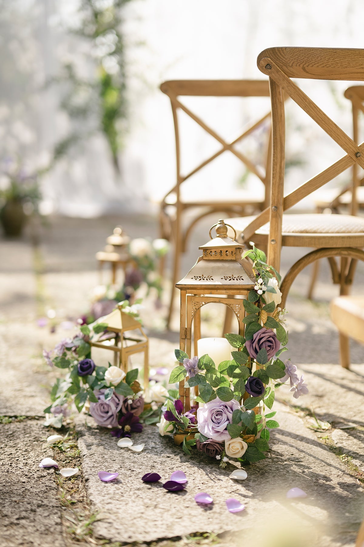 - Material: This aisle flower garland decor is made with silk and foam handcrafted flowers. Including cream rose, dusty violet rose, purple rose, white baby's breath, and realistic rose leaf garland.