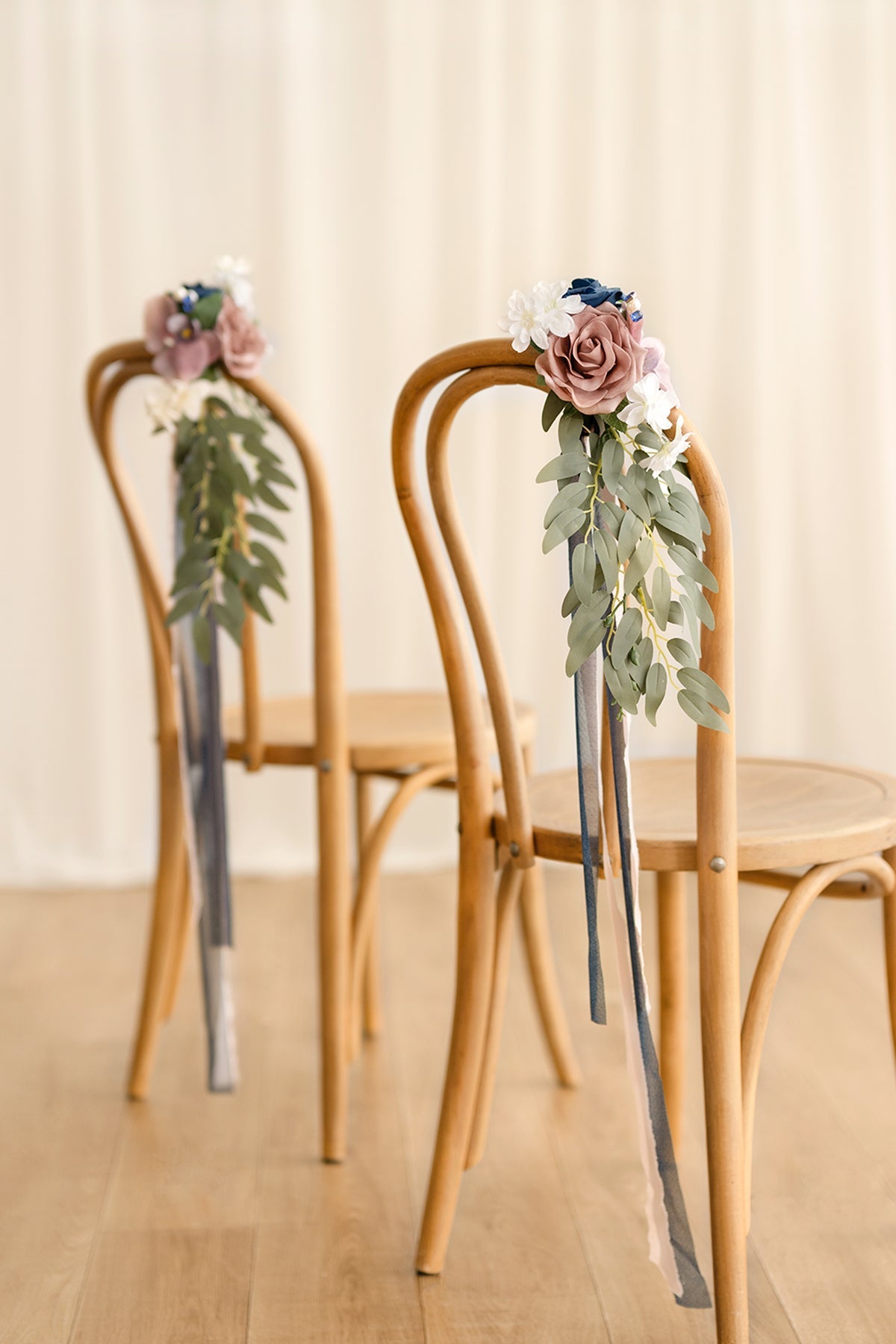 These burgundy and navy floral arrangements add a rustic and vintage touch to your wedding aisle chairs. It's so natural to share happiness with your friends and guests at a wedding or any other ceremony.