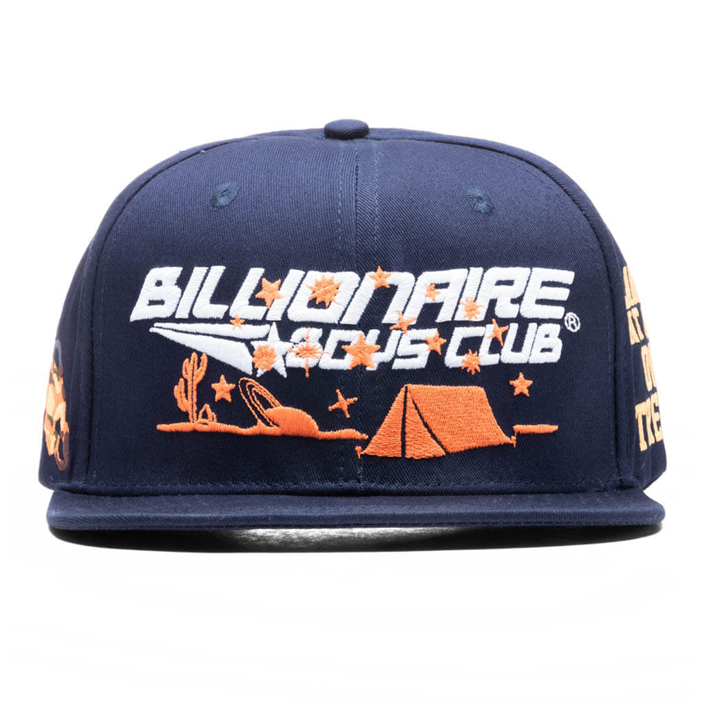 Make a statement in your headwear collection with the Yellowstone Snapback Hat from Billionaire Boys Club. The cotton-cut headwear item features a flat brim with woven eyelets at the crown. Embroidered branding, imagery, and graphics are scattered throughout the headwear item, spotlighting the remainder of the look.