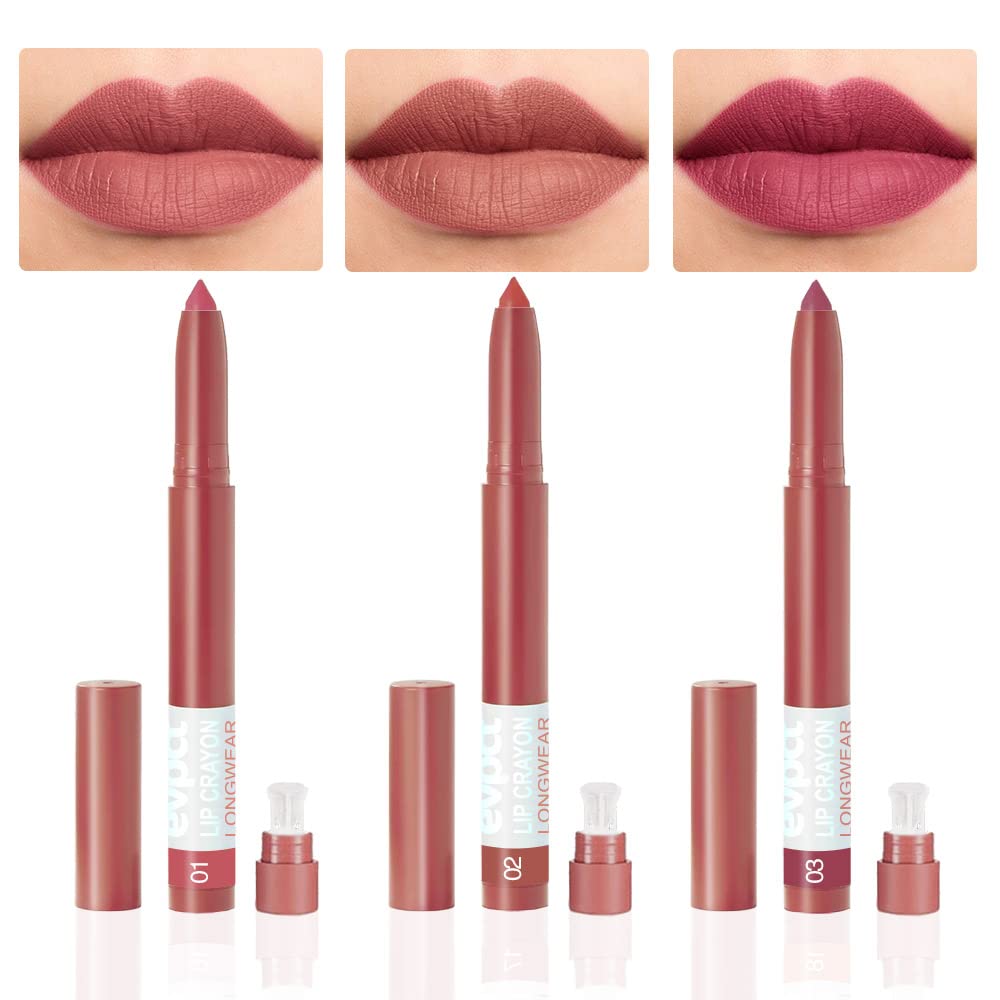 BINGBRUSH 3 Colors Crayon Matte Longwear Lipstick Pack Set,Moisture Smooth Lipliner With Built-in Sharpener Ultimate for Makeup- Nourishing Lipgloss