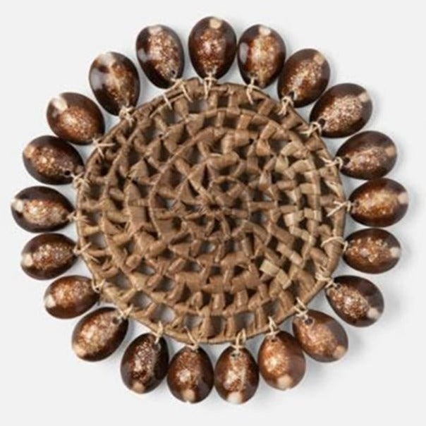 The Bondi Coasters from Blue Pheasant is hand woven with cowrie shells.