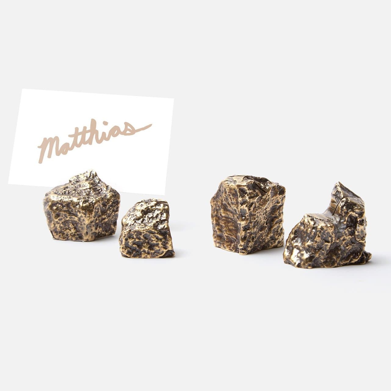 A quick pick-me-up conversation piece. Always-popular card holders shaped like natural metallic nuggets. Four different shapes!