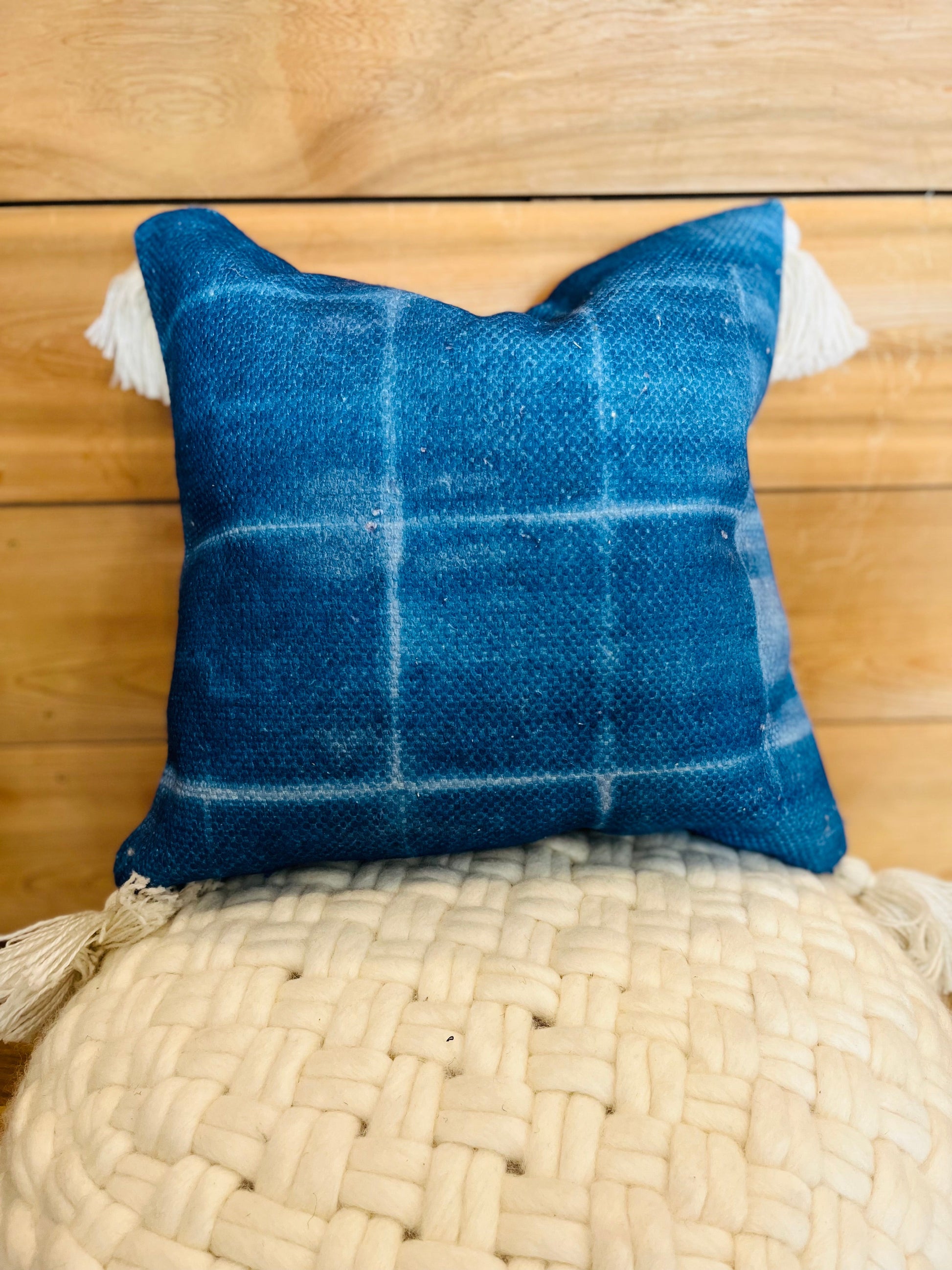 This beautiful tie dye square pillow has fun tassels on each corner for a pop of detail.
