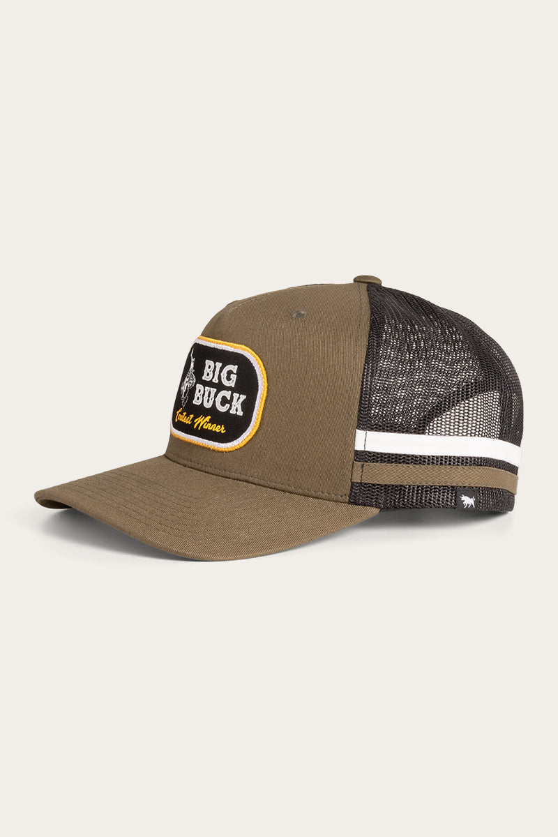 Our Ringers Western trucker caps represent the heart and soul of everything we stand for. This cap has a premium-quality mesh back and metal eyelets for optimal ventilation, ensuring all-day comfort on sun-soaked days. The structured front panel proudly displays a big buck embroidered logo, symbolising spirit and tradition. The classic snap-back closure offers an adjustable fit for most head sizes. Whether you’re out travelling the open road, attending a local festival or just representing the brand, our trucker caps have you covered.