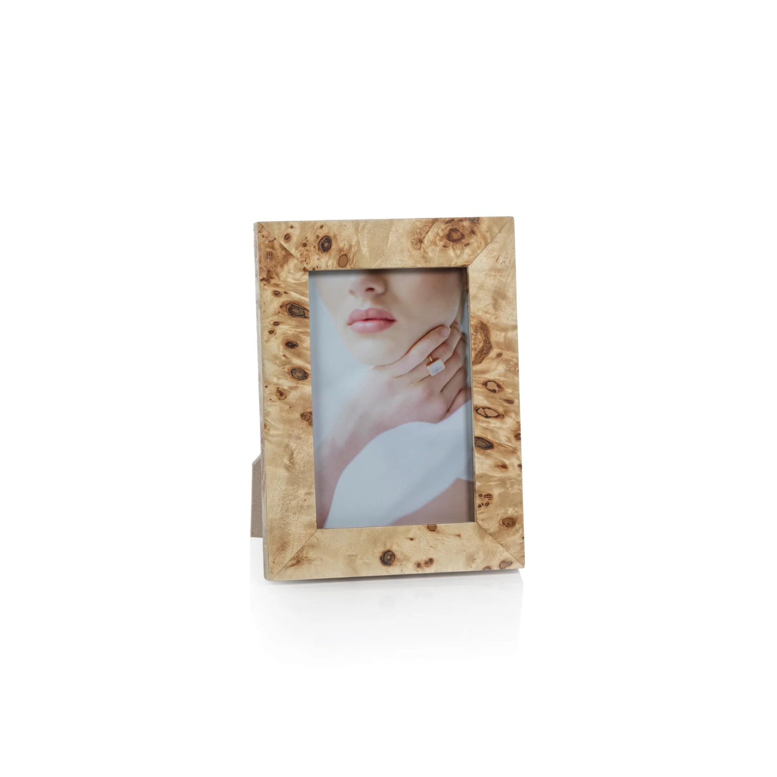 This brown picture frame, made from Burl Veneer, is a stylish way to decorate any tabletop!