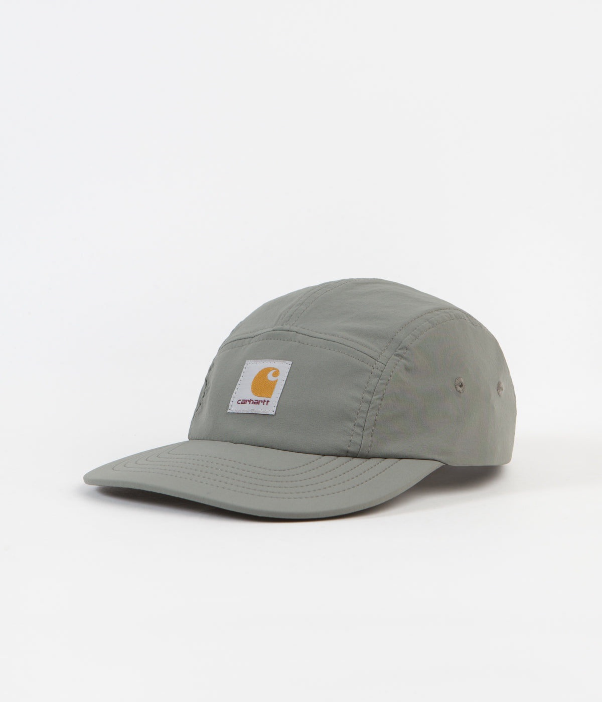 Carhartt Modesto Cap in Thyme. Seen here in an earthy shade of thyme green, this single sized Carhartt cap arrives as a single sized headwear accessory from the brand’s latest SS22 collection. Crafted from a blend of 83% nylon and 17% spandex, with a resilient 4.6oz composure, this unstructural five panel cap features a flattened peak, tonal embroidered side wall ventilation eyelets and a custom closure clip fastening across the rear for quick and easy adjustment. Signed off with reinforced and lined front panels and with the brand’s iconic C-wave brand patch sewn across the crown for further textured depth.