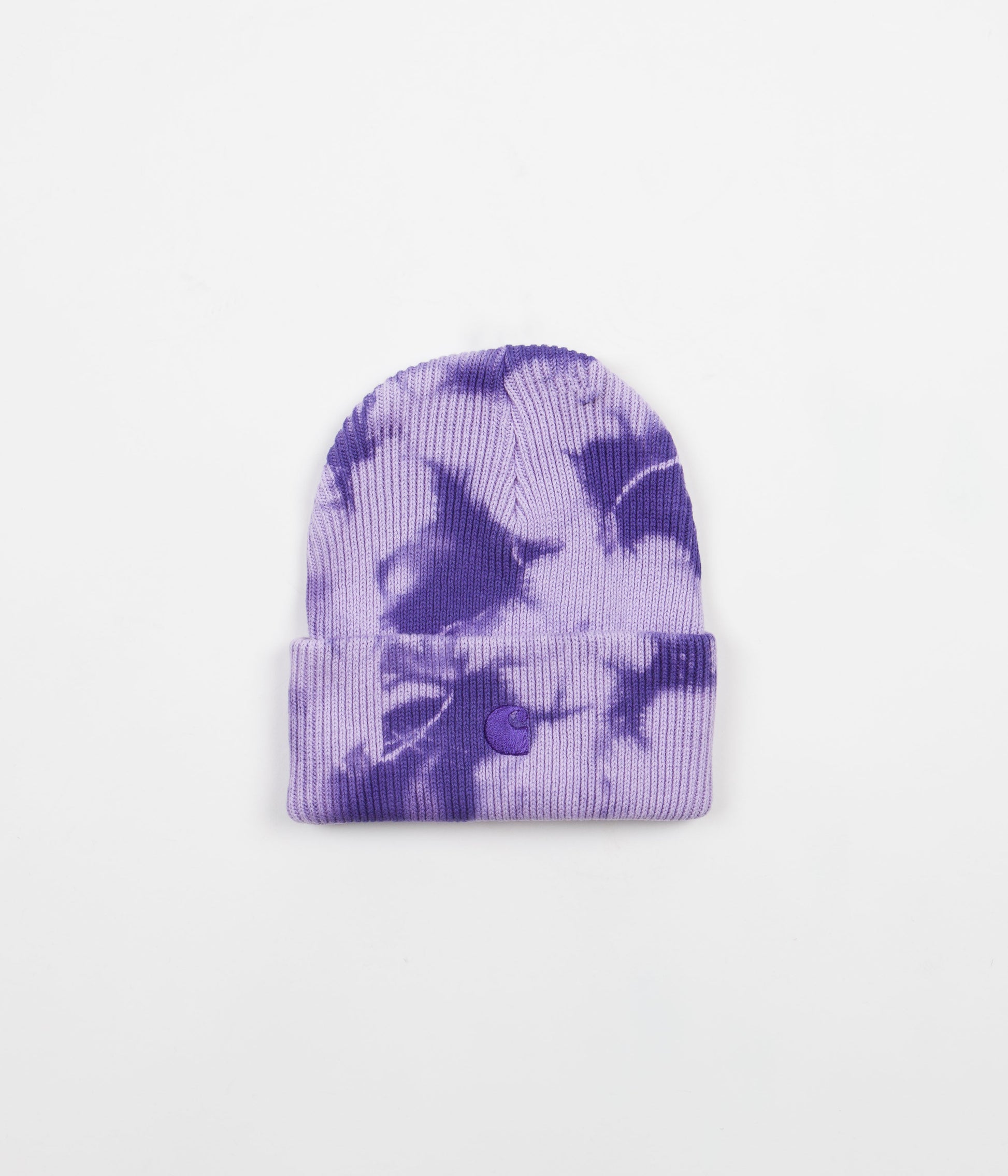 Carhartt Vista Beanie in Razzmic and Soft Lavender. Inspired by yesteryear tie-dye aesthetics, this single sized Carhartt beanie arrives as a creative headwear accessory from the brand’s latest SS22 collection. Crafted from 100% premium cotton with a resilient 6-gauge construction, this multi-tonal beanie hat is signed off with a stretchable fabric face, an adjustable turn-up cuff and with tonal C-wave embroidered branding displayed across the front of the design.