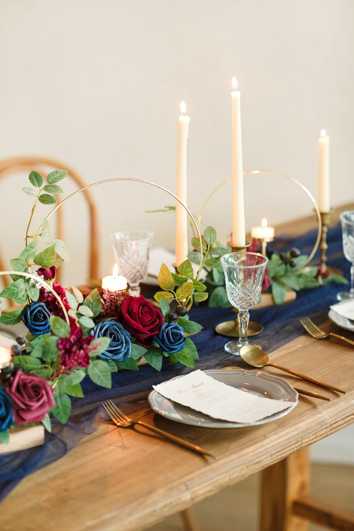 Wreath Hoop Centerpiece Set in Burgundy & Navy