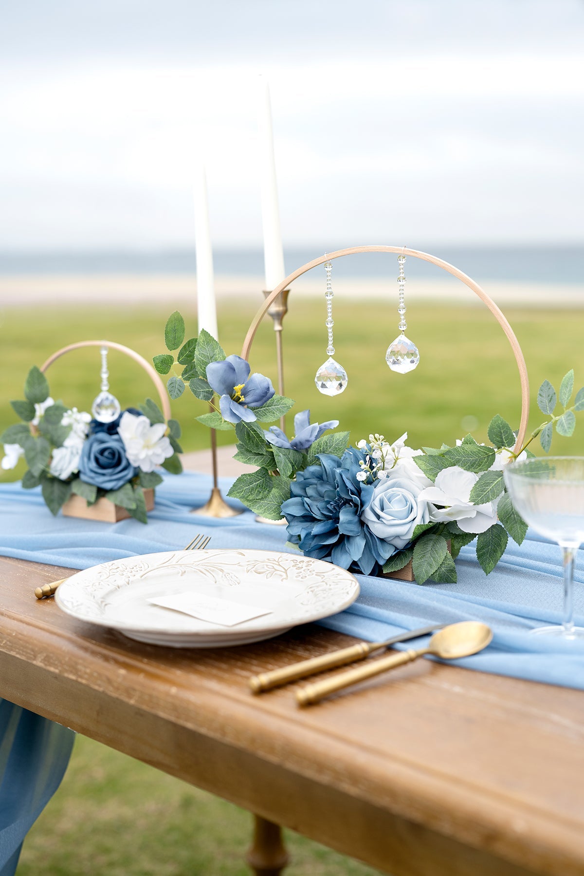 Wreath Hoop Centerpiece Set in Dusty Blue & Navy