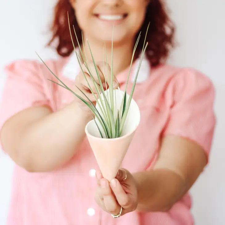 This beautiful Ceramic Cone is a unique way to bring plant life to your walls. They can hold air plants, dried flower arrangements, or artificial plants, adding greenery to any room. This modern design is a fabulous way to bring plants into your house without cluttering the tables! Each ceramic cone is handmade and will differ slightly from the photo.