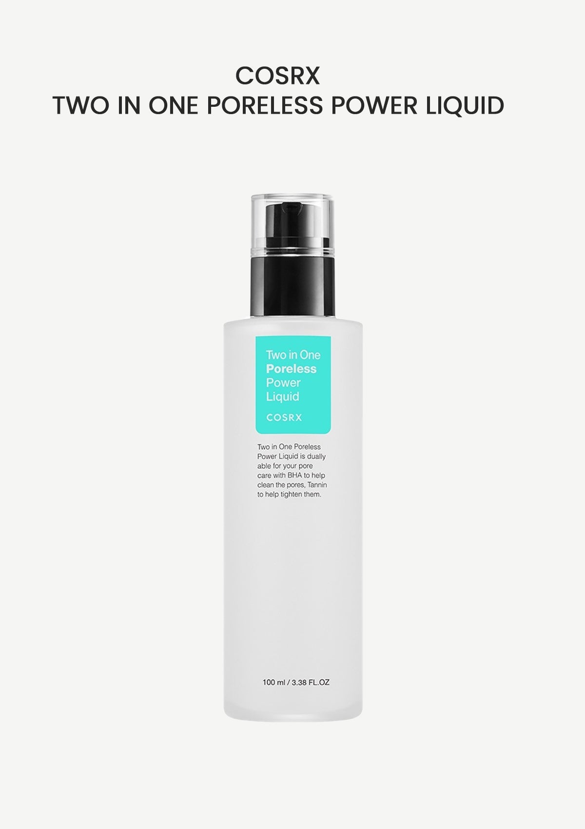COSRX's Two in One Poreless Power Liquid is an alcohol-free toner that cleans and tightens pores. Willow bark water is added to this lightweight formula to combat symptoms of acne, while hyaluronic acid offers deep, long-lasting moisture. Heated or Hot environment can enlarge your pores. This 2 in 1 Poreless Power Liquid cools your face to prevent your pores from getting bigger and tightness the pores at the same time.
