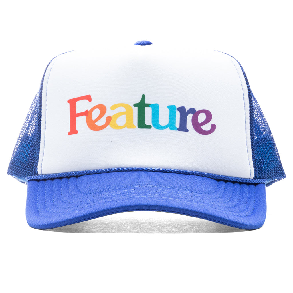 Join us in honoring this year’s Pride Month celebrations with our Spectrum Trucker Hat. The silhouette features a structured polyester foam front. Netted material is placed at the side panels, adding a breathable touch. A curved brim is placed for added detail. Inspired by the LGBTQ+ rainbow flag colors, FEATURE is printed in academy font at the center of the structured polyester front. The adjustable rear strapback closure offers a secure fit.