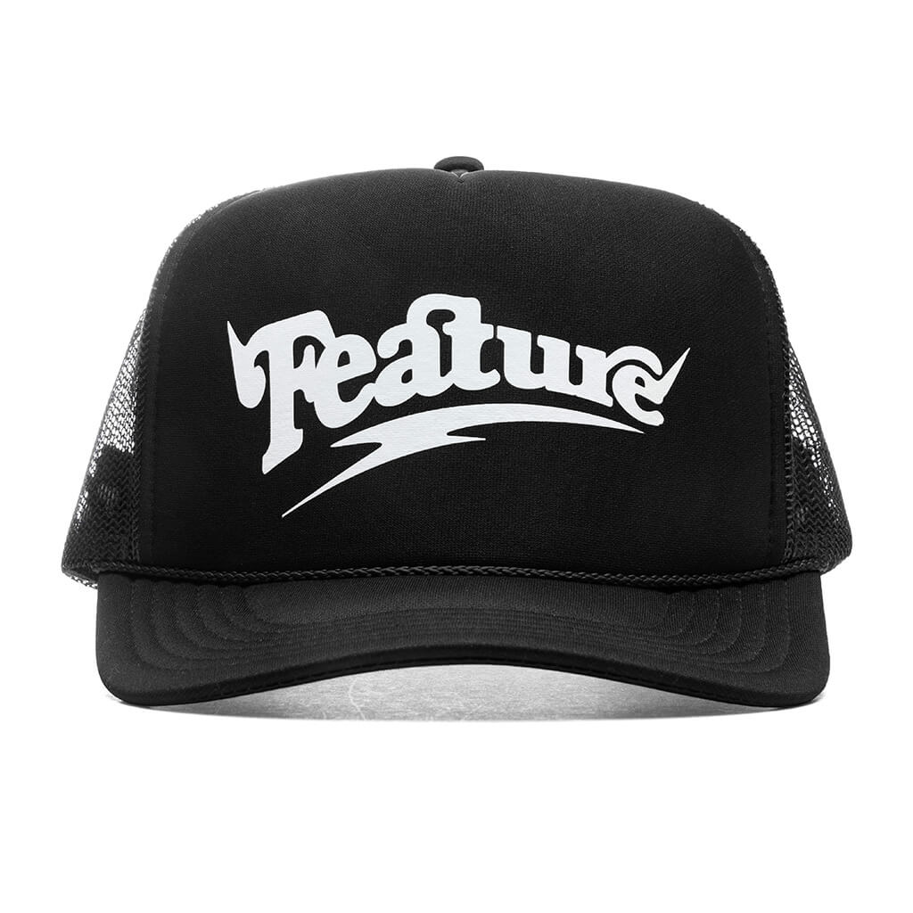 Represent FEATURE with the exclusive FEATURE Spike Trucker Hat V2. The front of the silhouette incorporates polyester foam for comfort. A screen-printed FEATURE logo is placed at the face of the hat, highlighting its design. With a structured front and curved brim, breathable netted material is recognized throughout the rest of the exterior. An adjustable strapback closure completes the design.