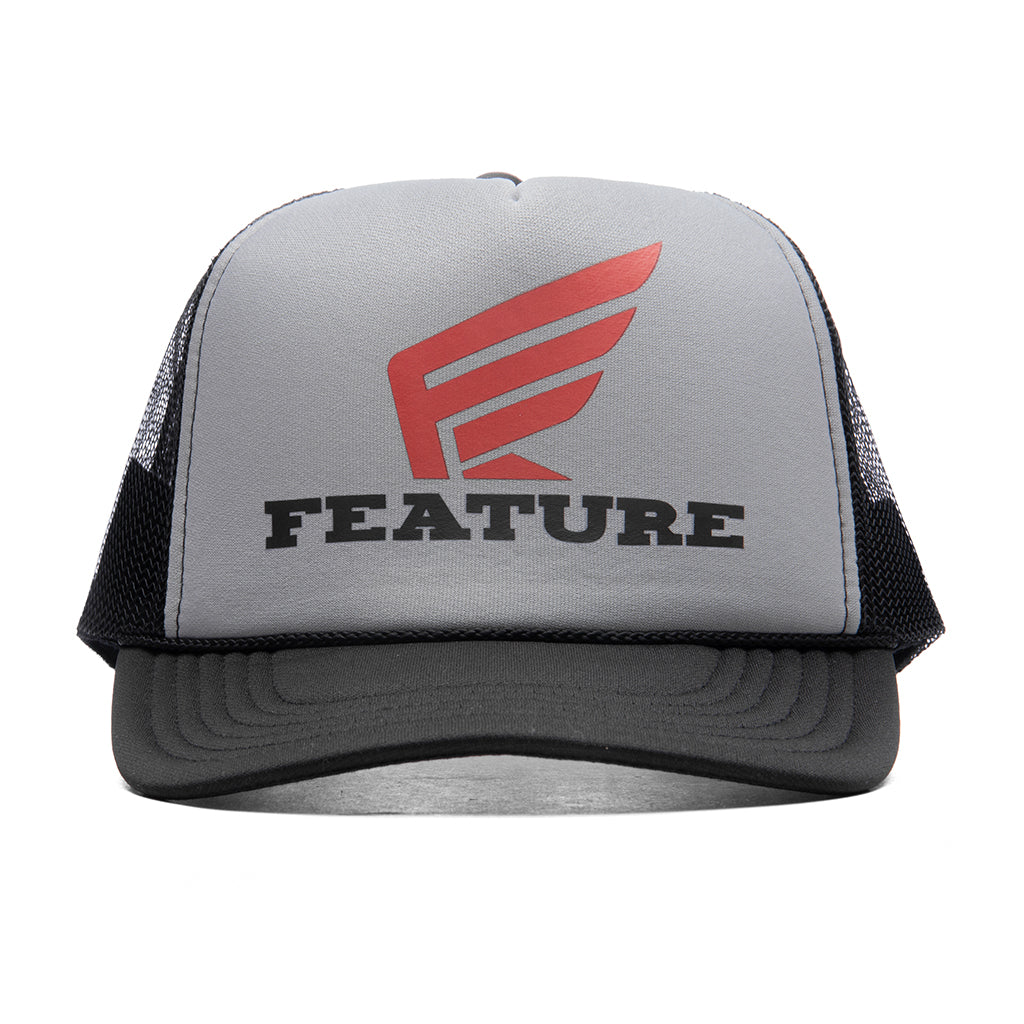The Feature Wing Trucker from the FEATURE ‘Las Vegas Grand Prix’ collection is constructed from a structured foam material on the front panel, while mesh panels decorate the remainder of the hat. Screen-printed graphics are placed on the front, showcasing motorsport-inspired iconography and FEATURE branding. The design is completed with a curved brim and a snapback closure.