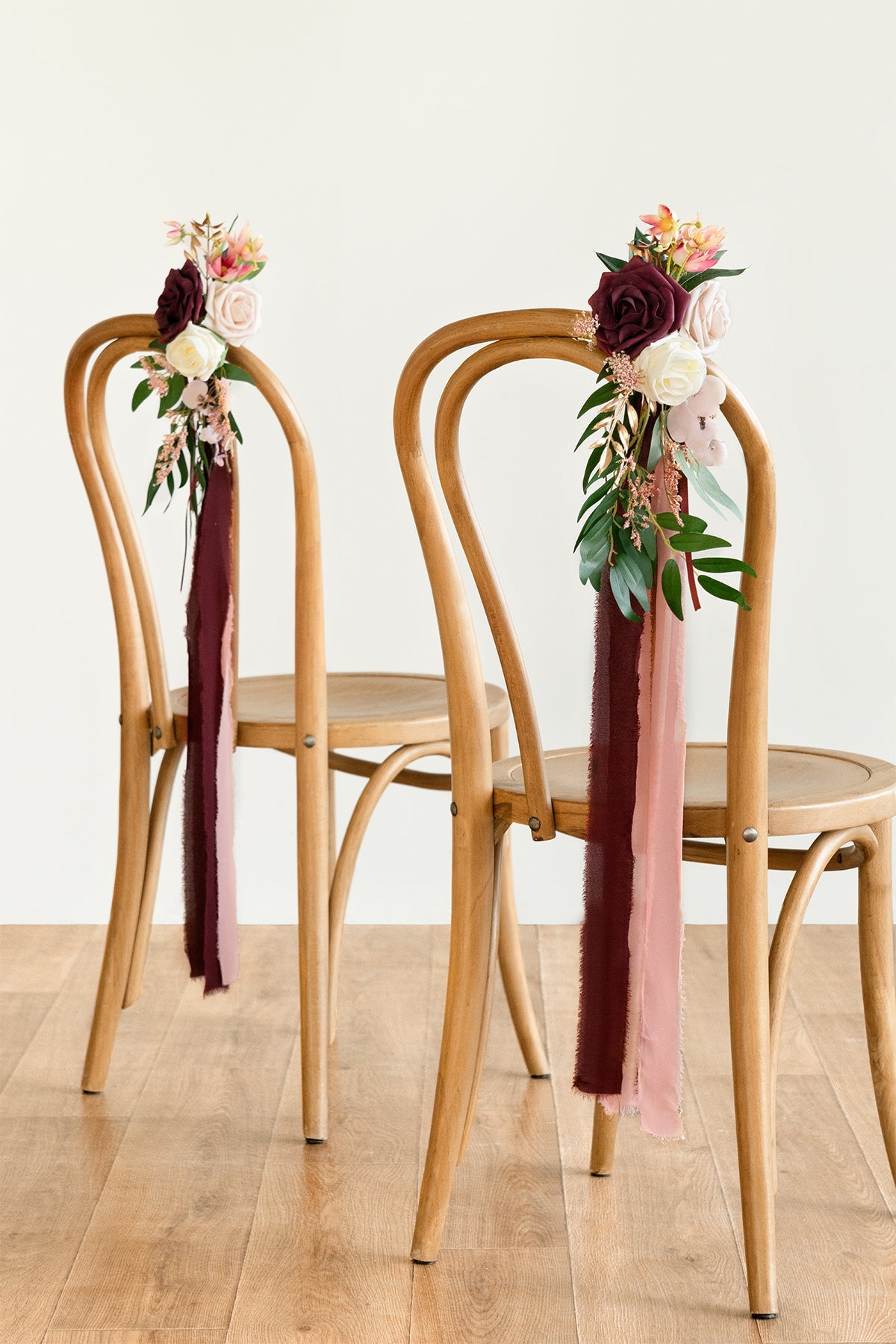 These marsala floral arrangements add a rustic and vintage touch to your wedding aisle chairs. It's so natural to share happiness with your friends and guests at a wedding or any other ceremony.