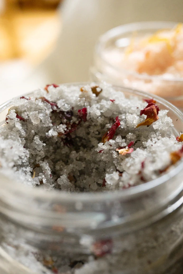 - Ingredients: Organic Rose buds & petals, Himalayan Pink and White Salts, Dead Sea salts, Sea salts, Magnesium Sulfate (Epsom), Organic Magnesium, Activated Charcoal, Dead Sea clay, Kaolin clay and pure Essential oils.