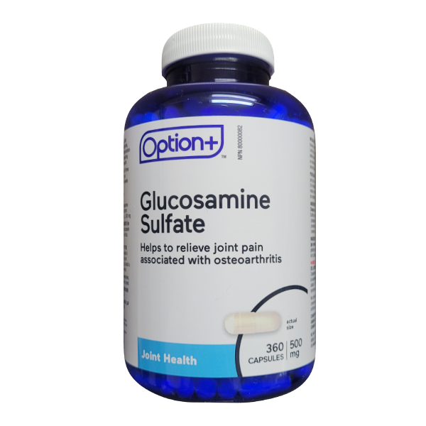 Option+ Glucosamine Sulfate caplets helps to relieve join pain associated with osteoarthritis and improve joint health.