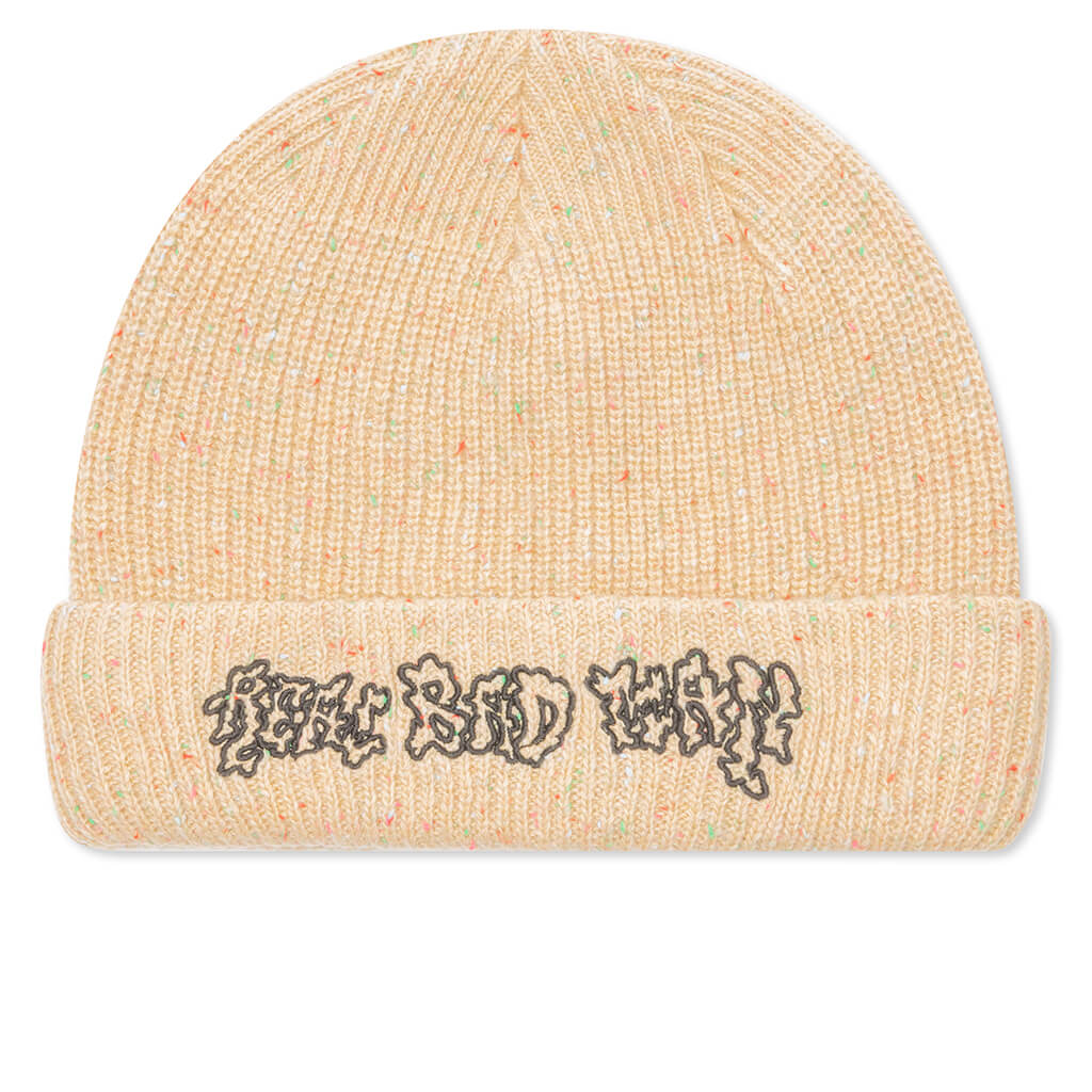 Real Bad Man’s latest arrivals include the Wild Record Knit Beanie. Cut from a blend of wool, the silhouette spotlights embroidered script at the front of the single fold. The multi-colored flecks throughout the design wrap up the remainder of its aesthetic.