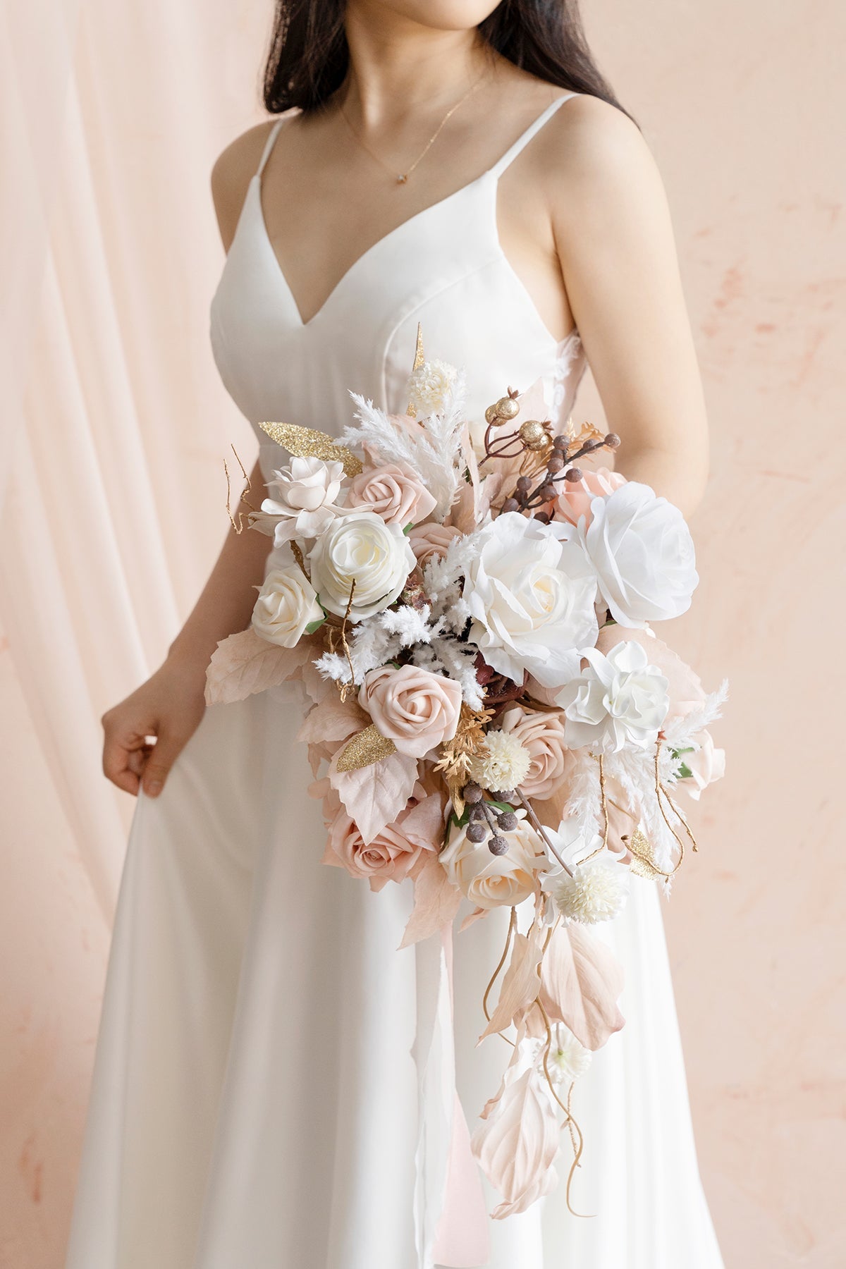 Small Cascade Bridal Bouquet in White & Beige | Clearance