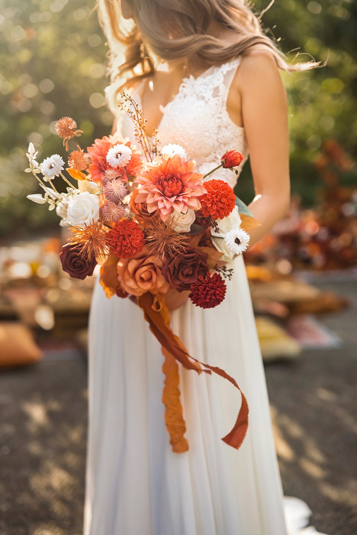 Small Free-Form Bridal Bouquet in Burnt Orange & Scarlet