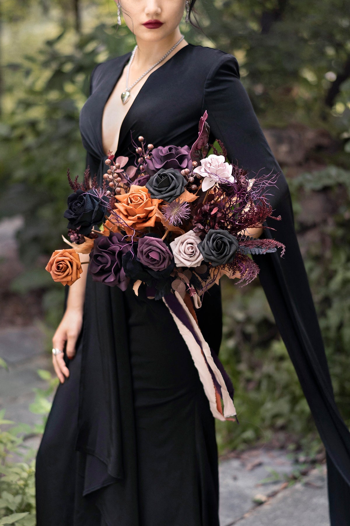 Shades of mystical Purple & Lilac blend with Black & Orange to create an enchanting vibe perfect for forest weddings. Express your unique style with this designer bridal bouquet and create special moments that last a lifetime!