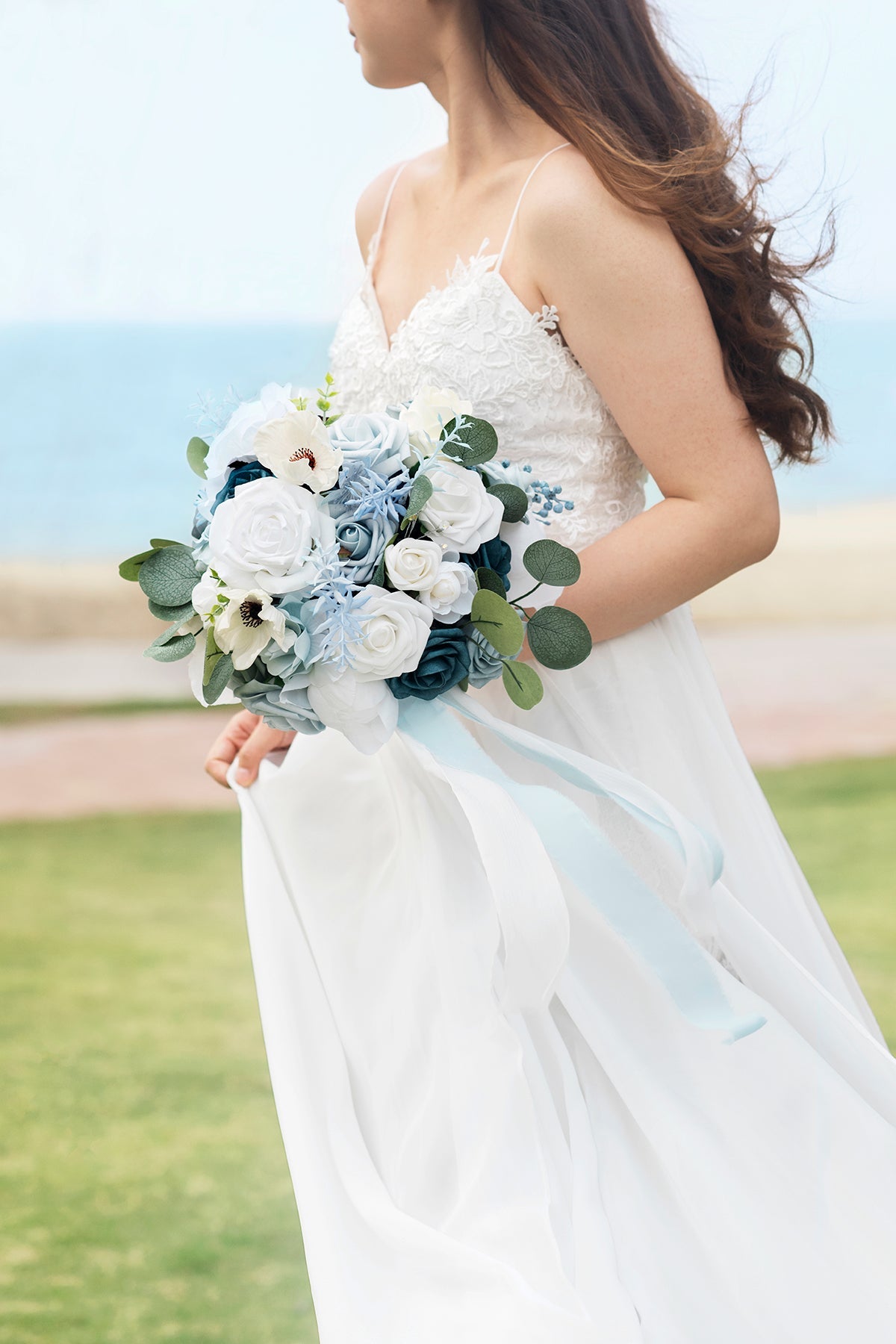 Evoke the romance of the French coast with Ling’s moment’s dusty blue and navy wedding decor. We designed this bouquet to capture elegance and grace, helping your wedding memories stay timelessly beautiful.