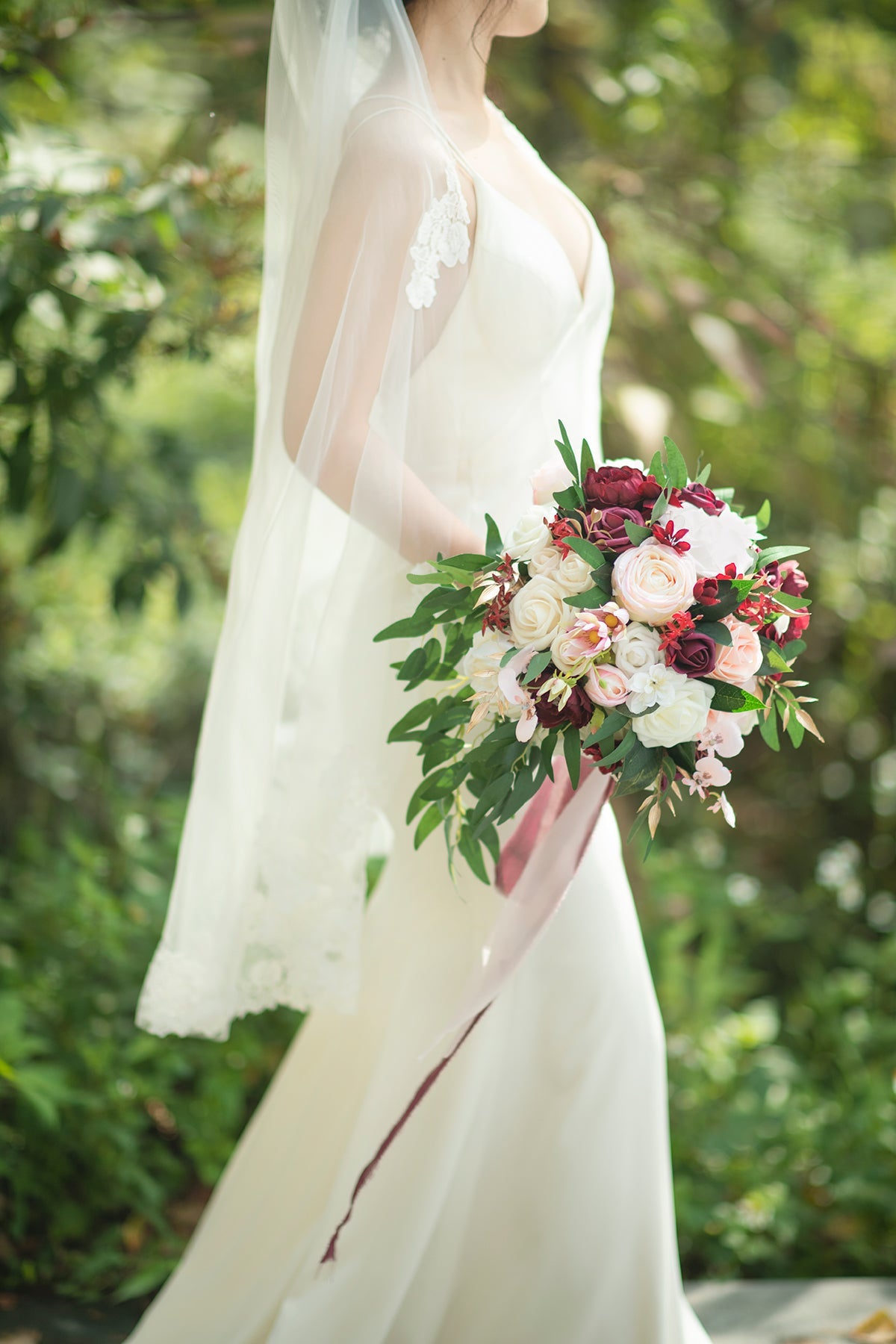 Featuring a blend of passionate marsala and light blush tones, this collection is designed to create the wedding of your dreams. Capture timeless elegance with this classic bridal bouquet and create wedding memories that last a lifetime.