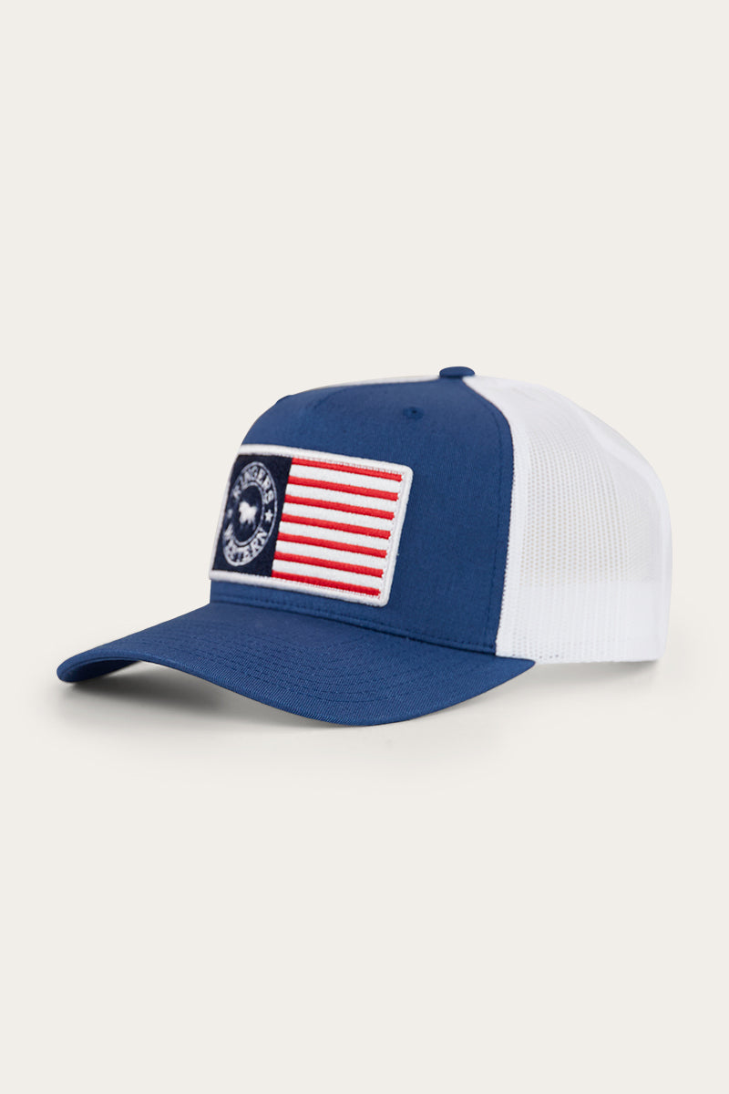 Our Ringers Western trucker caps represent the heart and soul of everything we stand for. This cap has a premium-quality mesh back and metal eyelets for optimal ventilation, ensuring all-day comfort on sun-soaked days. The structured front panel proudly displays a Ringers Western flag logo, symbolising spirit and tradition. The classic snap-back closure offers an adjustable fit for most head sizes. Whether you’re out travelling the open road, attending a local festival or just representing the brand, our trucker caps have you covered.