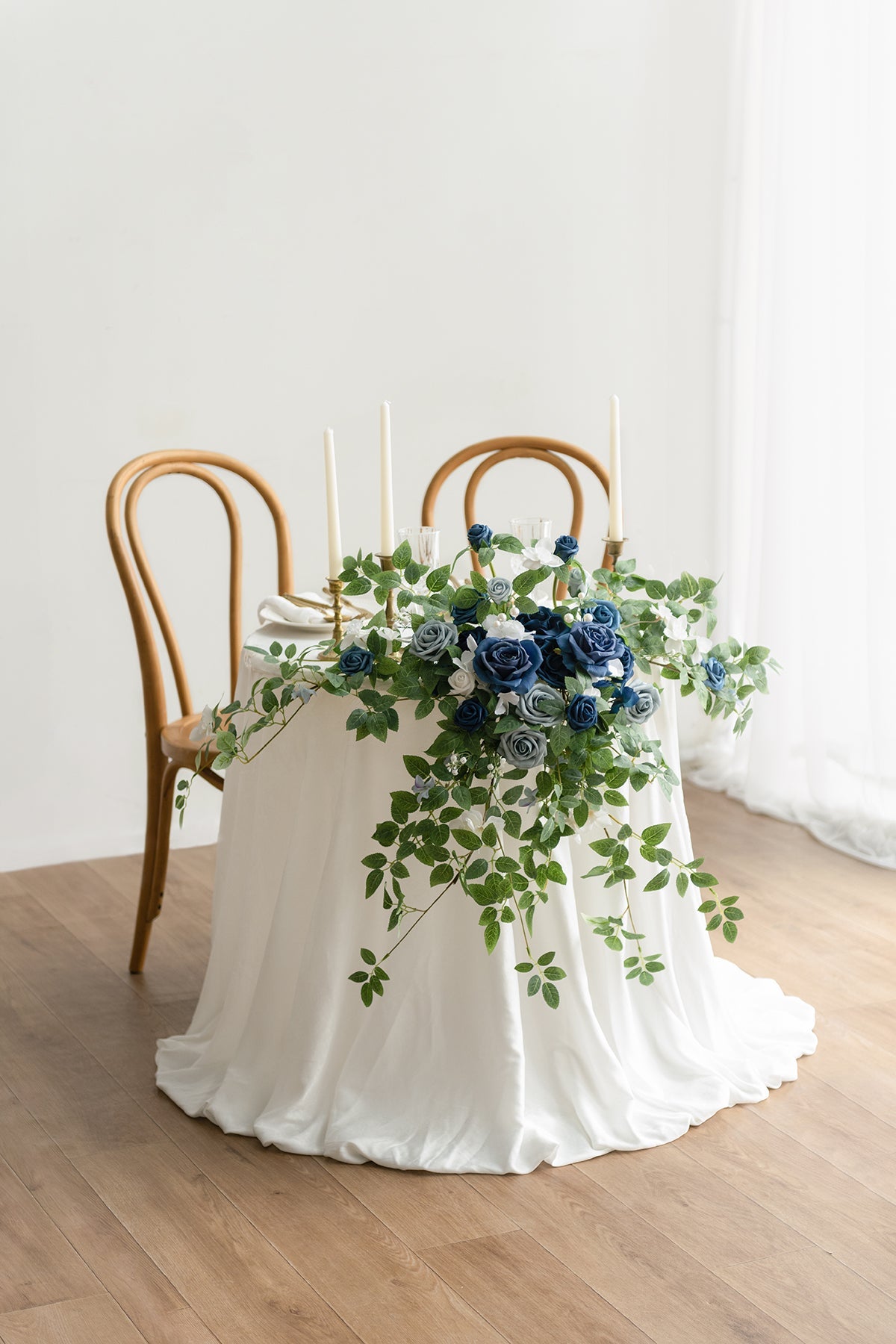 Sweetheart Table Floral Swags in Dusty Blue & Navy