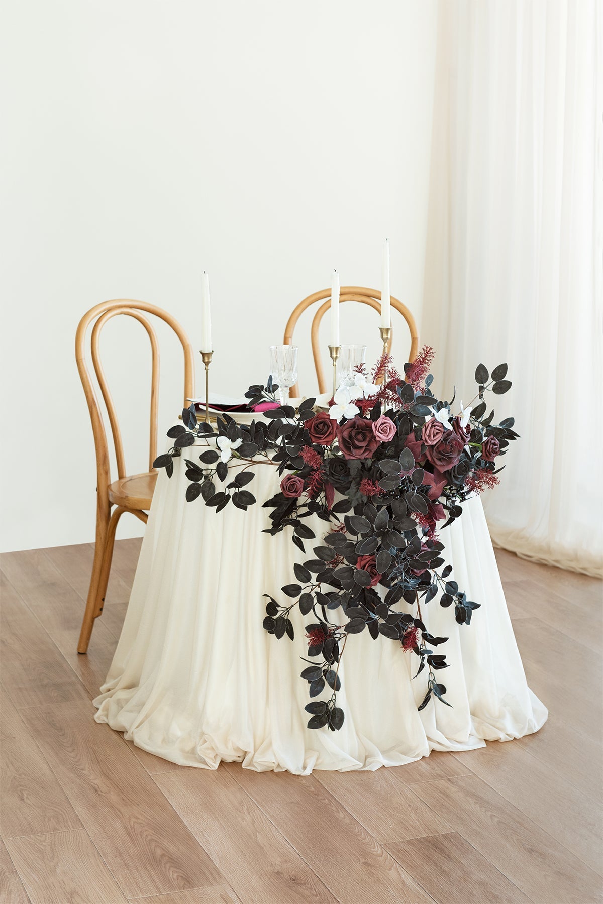 Sweetheart Table Floral Swags in Moody Burgundy & Black