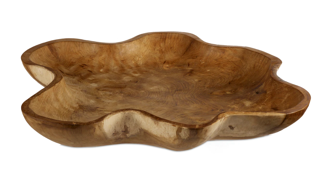 Teak wood is prized by modernist designers and traditional wood craftsmen for its resistance to cracking or warping. As foresters log off mature stands, they leave behind stumps and roots that would typically be burned out of the soil. For generations now, enterprising village craftsmen in Indonesia have extracted these abandoned roots and worked them into beautiful household products with a unique, organic nature that animates their creations.