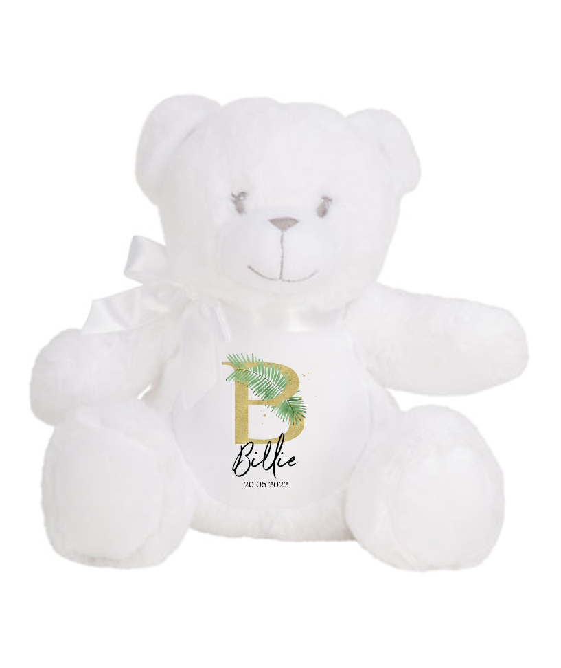 Timber Tinkers - Personalised White Teddy Plush - Gold Leaf