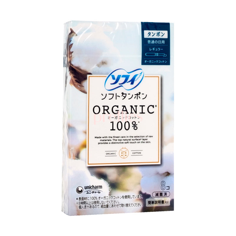 Unicharm Soft Tampon Organic Cotton 100% Regular Tampons for Regular Menstrual Flow 8pcs