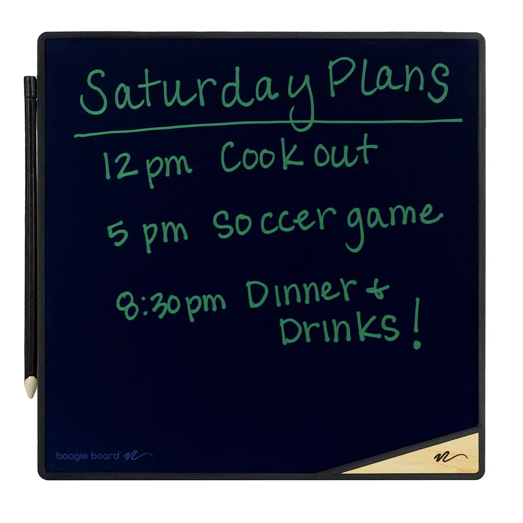The VersaTiles Black Boogie Board is perfect for writing those reminders, memos, and juicy quotes in style. Easily switch up your home décor with its sleek, all-black design. For added convenience, the VersaPencil stylus attaches to the board with magnets and has QuickClear technology for easy erasing. Make your mark and jot away!