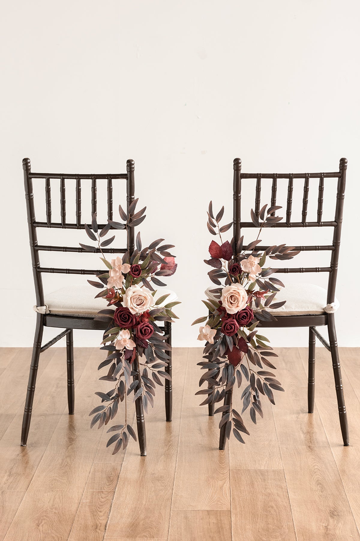 Wedding Aisle Chair Flower Decoration in Burgundy & Dusty Rose