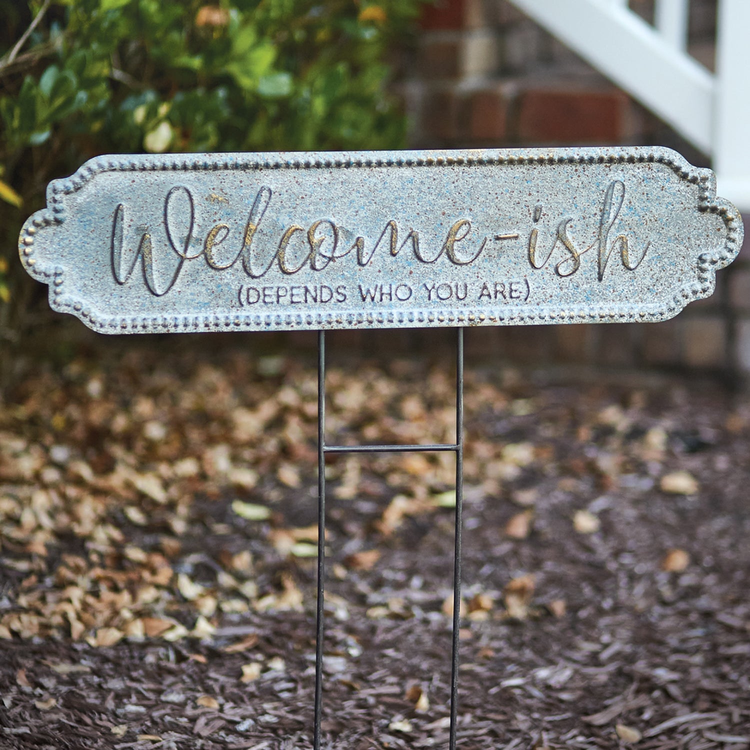 Featuring the phrase ''Welcome-ish… Depends who you are, '' this garden stake will be sure to capture many laughs. It’s the perfect sign for introverts, homebodies, and people who love a good chuckle.