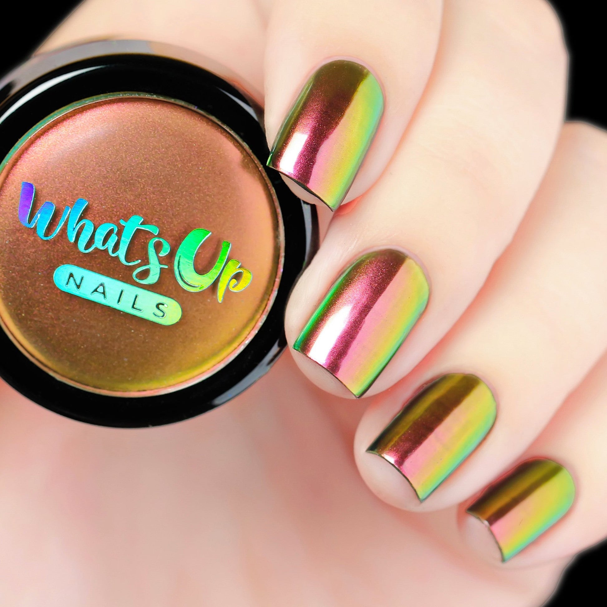 With this super fine powder, it gives your nails an incredible?red, gold, green and a hint of blue?multi chrome?effect like no other.?